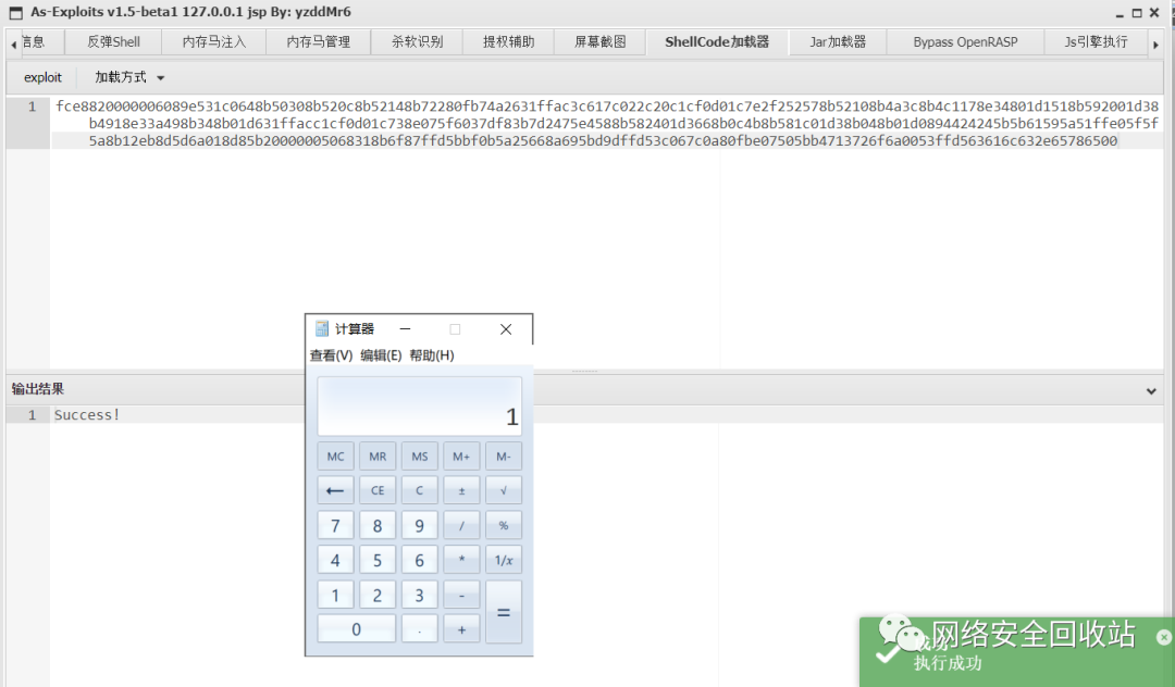 ShellCode加载器模块-加载方式JNA,exploit,弹出计算器,也就实现了内存加载ShellCode的功能