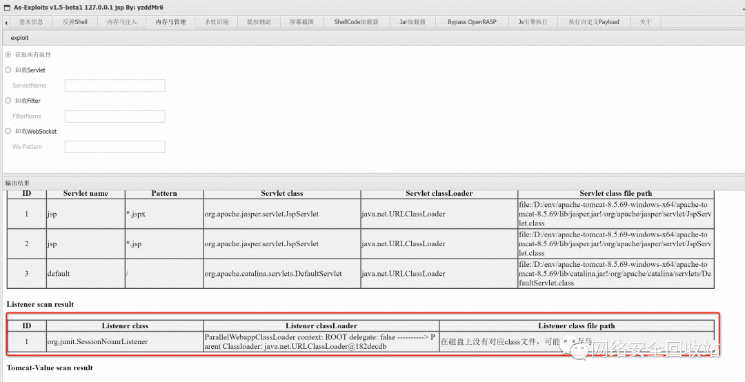 核心代码来自:https://github.com/ruyueattention/java-memshell-scanner