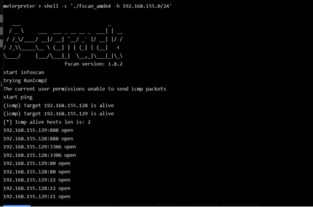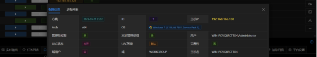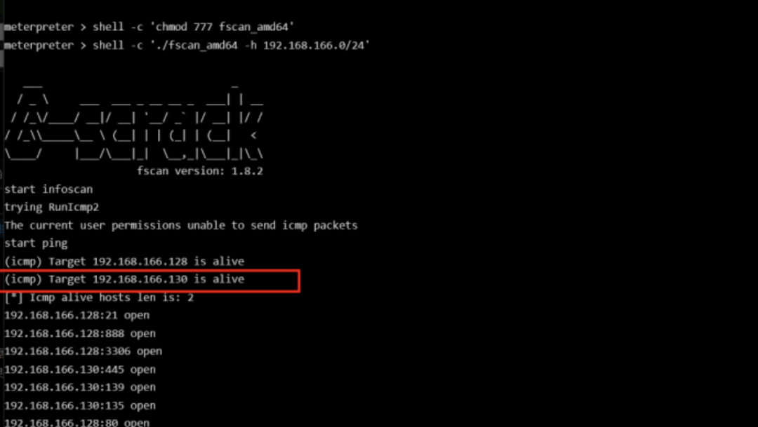上传fscanarm64检测ip 检测到window7 ip为192.168.166.130存在445端口