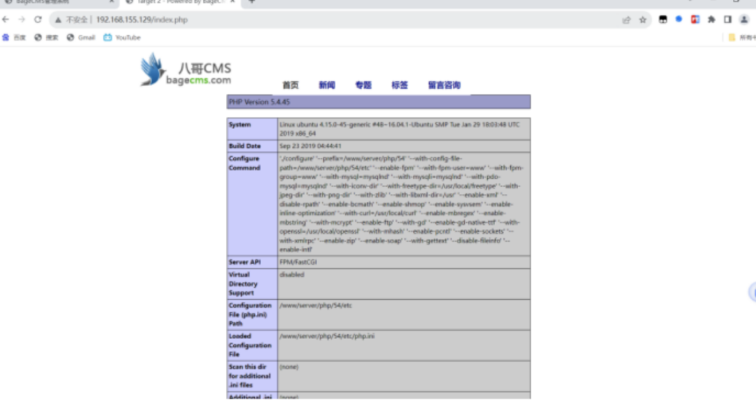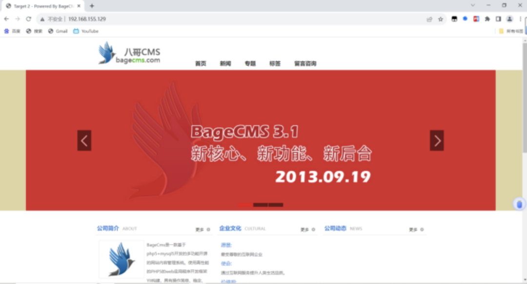 访问192.168.155.129,是八哥CMS,看看robots.txt有没有提示: