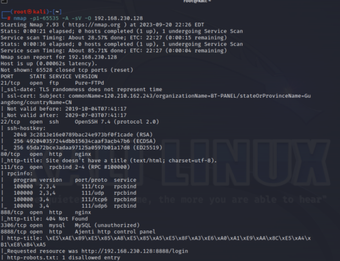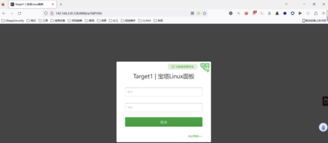 扫到了,192.168.230.128为centos7的ip地址,虚拟机的描述给了宝塔的登录地址,如下:http://192.168.230.128:8888/a768f109/