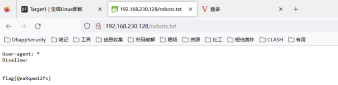 进robots.txt下,拿到第一个flag为:flag{QeaRqaw12fs}