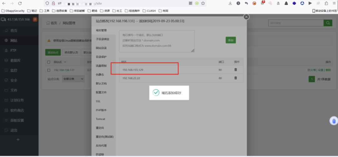 同样的方式,上unbuntu的宝塔,配unbuntu的ip:192.168.155.129