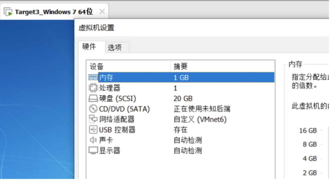 Windos 7配置6网卡,仅主机模式,断开和本机的连接。