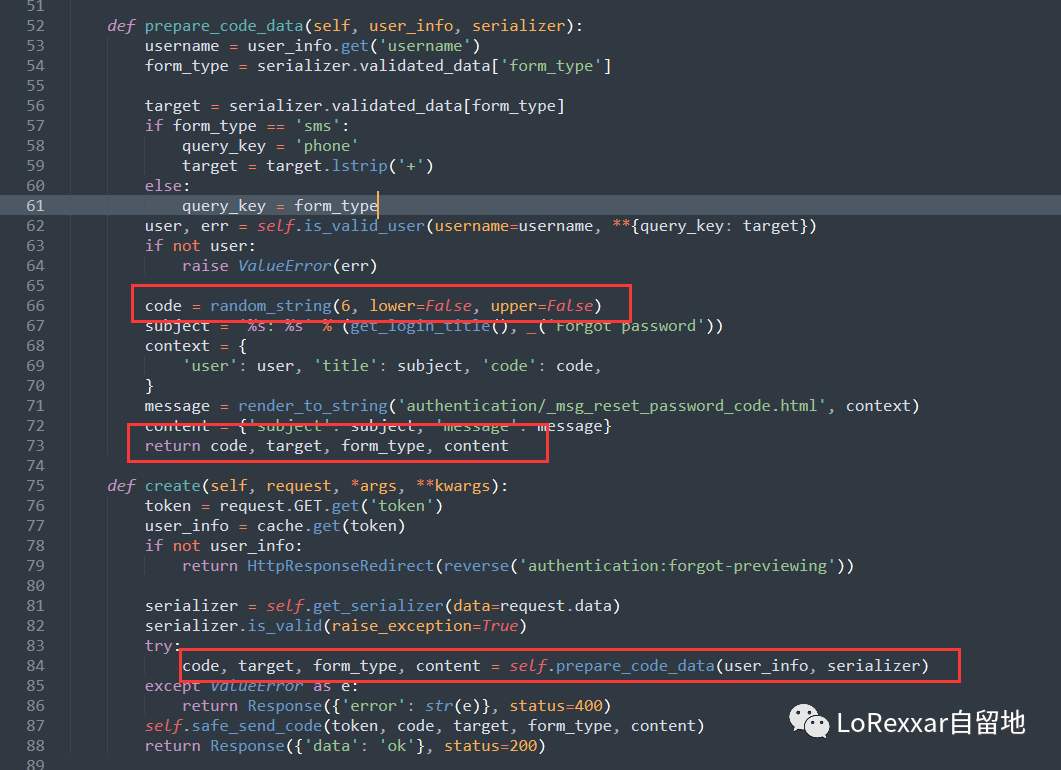 由于场景特殊,这里我们用不到那么深入的数据流分析,只需要在对应重置密码的路由中确认是否调用random.choice方法就行了