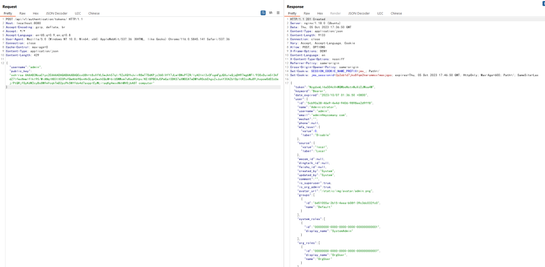 • JumpServer 全局开启公钥认证后,用户可以使用公钥创建访问Token的漏洞,CVE编号为CVE-2023-43652