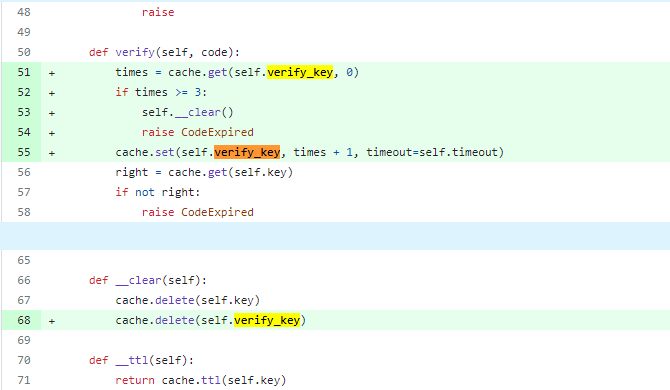 官方对于这个漏洞的修复方法是,在验证Verify Code的时候限制次数,超过三次则强制过期这个Code: