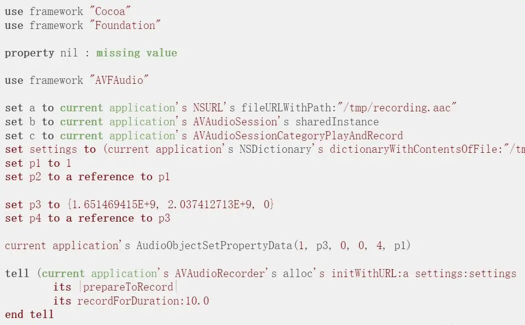 要使用DirtyNib文件进行实际录制,我们将使用下面的AppleScript: