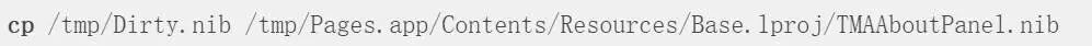 在第一次启动并终止应用程序后,我们需要用DirtyNIB文件覆盖现有的NIB文件。出于演示目的,我们将覆盖About Panel NIB,我们可以控制执行: