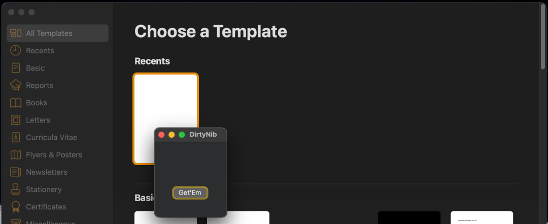 有了从NIB执行任意AppleScript代码的能力,接下来需要选择Pages作为我们的初始目标,它是一个苹果应用程序。