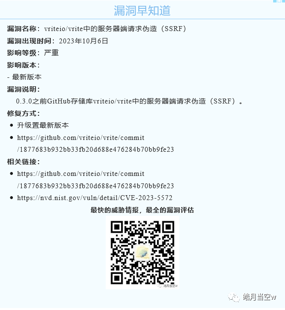 【严重漏洞】【poc公开】vriteio/vrite中的服务器端请求伪造(SSRF)
