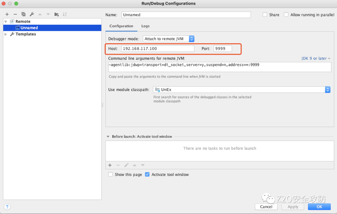 填入远程调试的IP地址和端口: