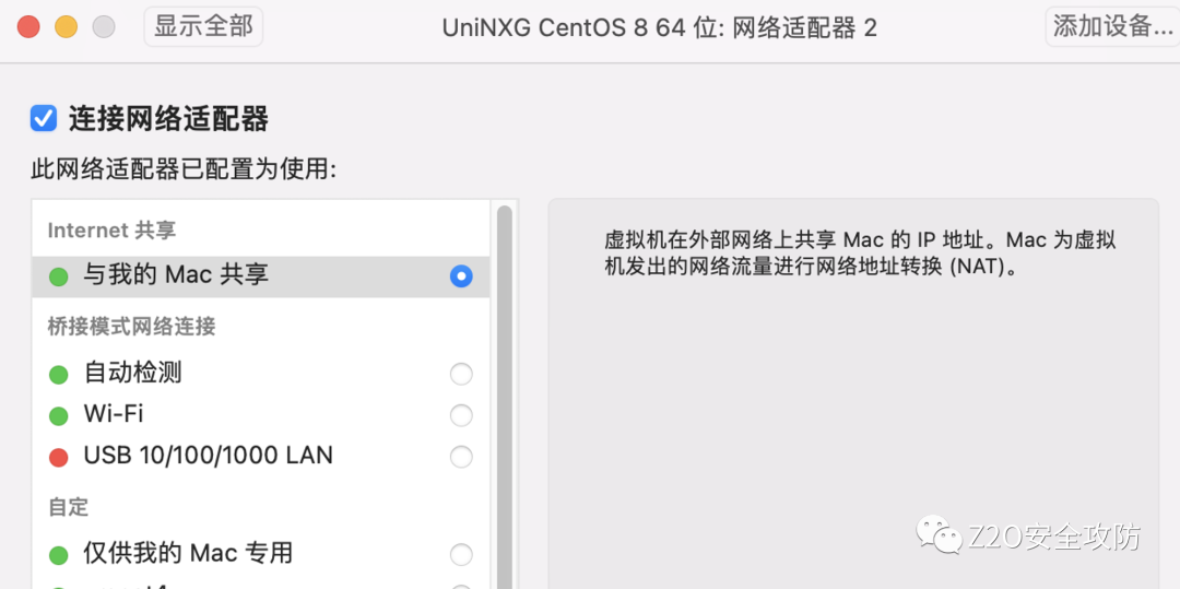 我添加了两个网卡,其中一个用来供本机访问: