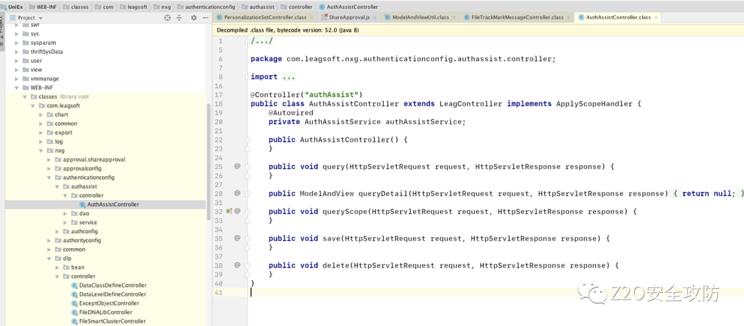 将war包拷贝到本地通过idea打开,发现关键代码的实现都是空,连spring的控制器都是空,初步怀疑是被加密了,那么它是如何加密的呢?