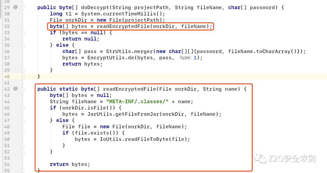 通过readEncryptedFile 方法读取META-INF/.classes/ 下的class文件进行解密。