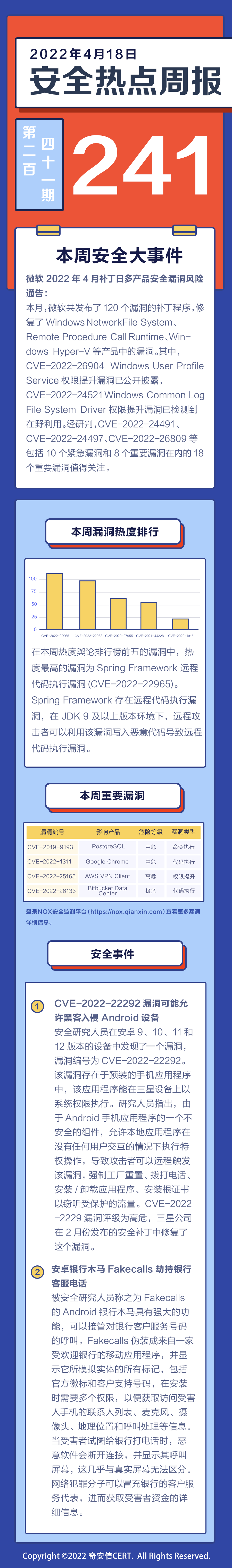 【安全热点周报】第241期:微软4月补丁日发布了120个漏洞的补丁程序