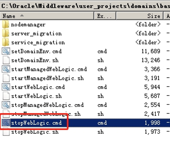 进入域所在目录下的bin目录,在Windows系统中运行stopWebLogic.cmd文件终止WebLogic服务,Linux系统中则运行stopWebLogic.sh文件。
