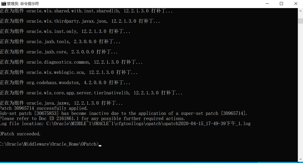 C:\Oracle\Middleware\Oracle_Home\OPatch>opatch apply 本机补丁地址