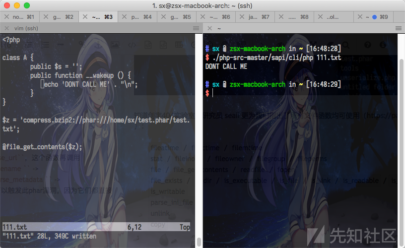 $z = ‘compress.bzip2://phar:///home/sx/test.phar/test.txt’;