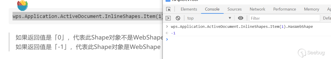 由于 WPS 的 JS API实现的功能和 VBA 的类似,所以在未找到 WPS API相关文档的情况下,参照 OLEFormat.Edit method文档最终构造出触发 OLE公式编辑的请求: