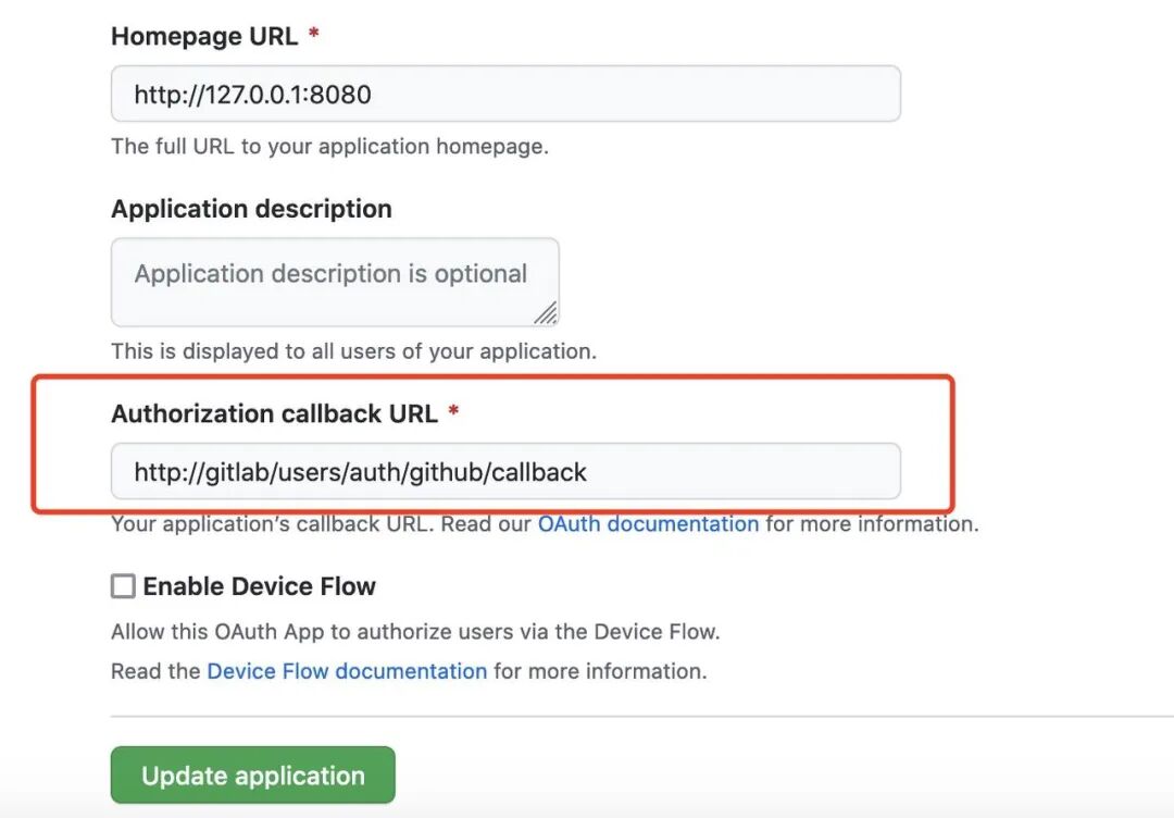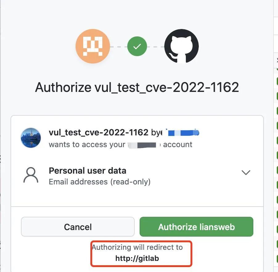 此时的redirect_uri为。http://gitlab/users/auth/github/callback