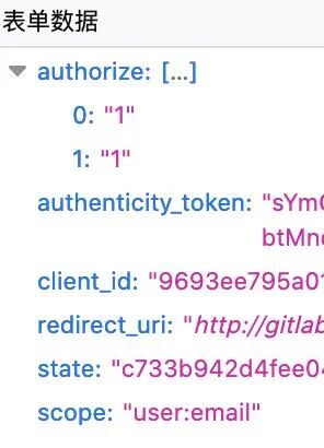 - 回到gitlab登陆页,点击GitHub登陆、跳转到授权页面。红框标注的是认证后将会跳转到 http://gitlab ,这肯定不对。先往下走吧。再看看这次请求的参数。