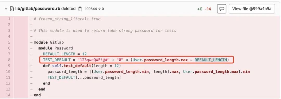 看下Gitlab Diff 记录, password.rb 中 定义了默认密码。当使用第三方登录的时候,会自动创建与github同名的账户,默认密码 就是 123qweQWE!@#000000000