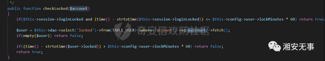 首先会调用checkLocked方法,跟进查看代码,主要是对当前登录的用户是否被锁定做一个简单的判断,具体的判断方法就是计算当前登录时间和锁定时间的时间差是不是仍小于锁定的时间。
