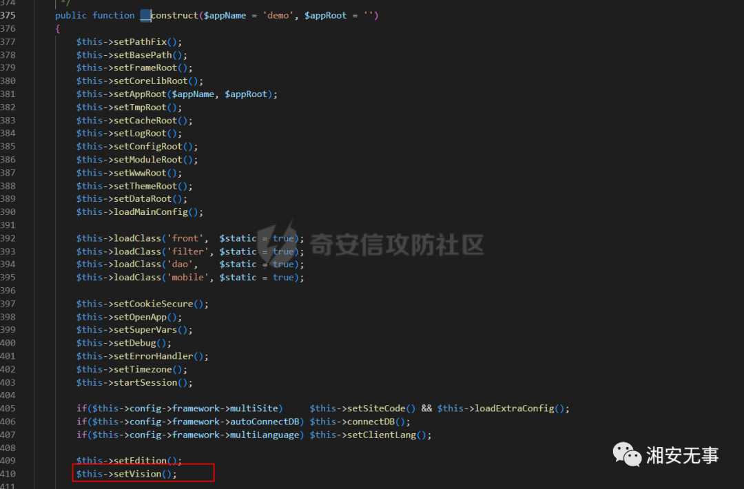 看一下该构造方法,在初始化的时候会调用很多本类中定义的方法,像设置目录的分隔符,基础目录等。在经过逐个方法跟进查看之后将视线放在了setVision()方法上面,跟进,一眼就看到了漏洞所在