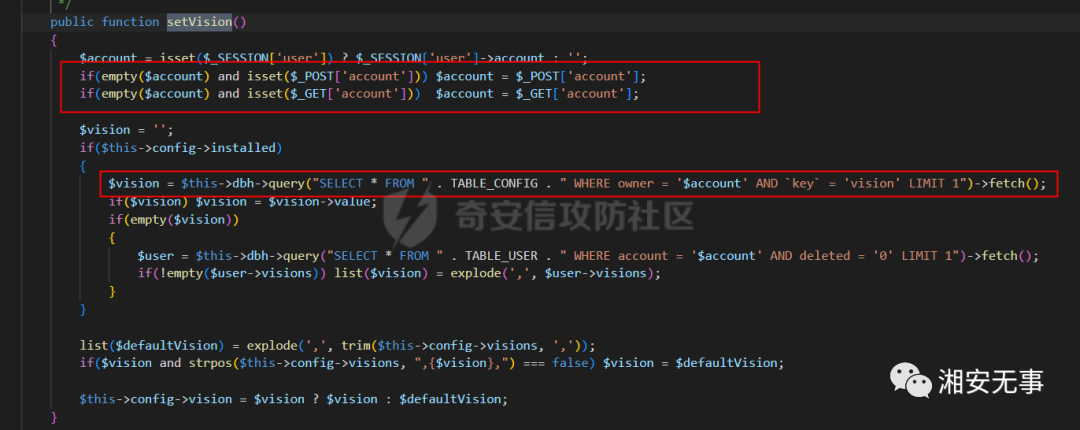 这个地方卡了挺久,一直没有找到漏洞产生点;漏洞的利用路径并没有错,不知道问题在哪里。后面重新梳理了一下目录,突然想到/www/index.php,作为所有请求的入口,说不定有点什么特殊的地方,果然,在全局搜索和var_dump全局打印下找到了点。
