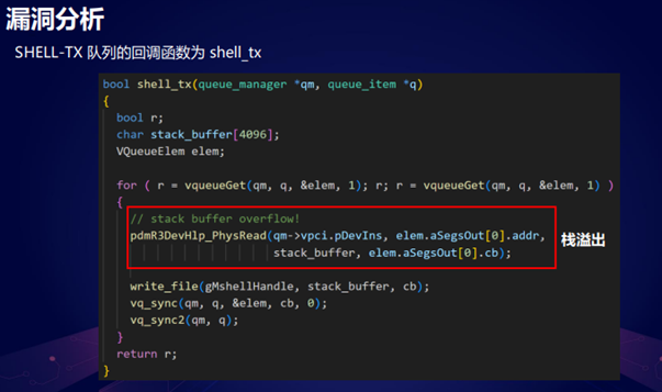 它的漏洞位于SHELL-TX 队列的回调函数中,它的一个漏洞成因其实也是非常简单粗暴的,aSegsOut.CB没有检查会导致栈溢出: