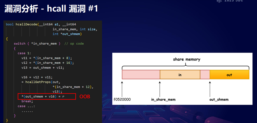 hcallDecode 里面存在许多服务和漏洞,比如OOB:
