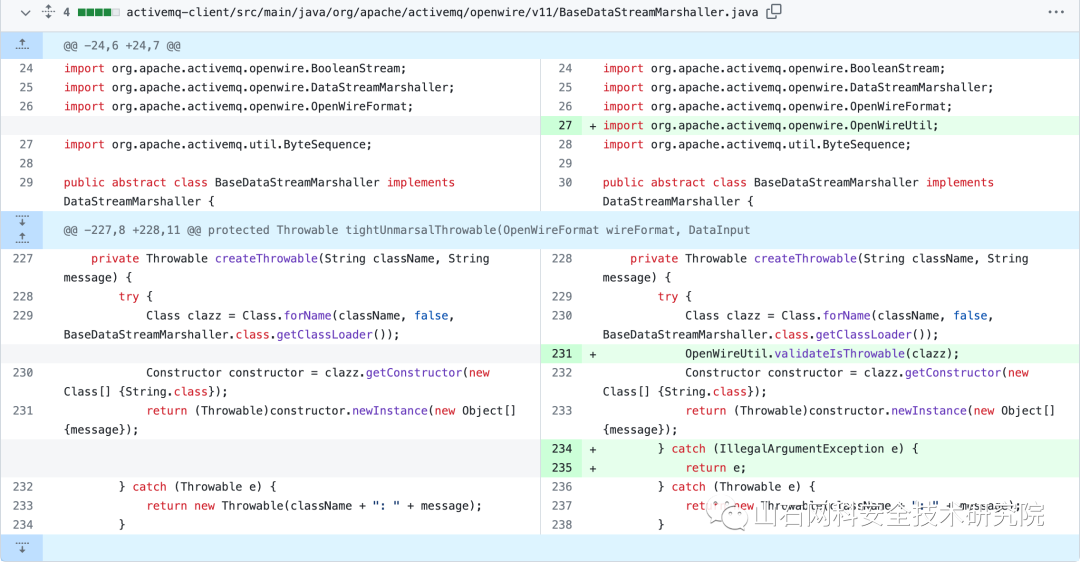可以看到这里BaseDataStreamMarshaller中加入了新的validateIsThrowable 方法