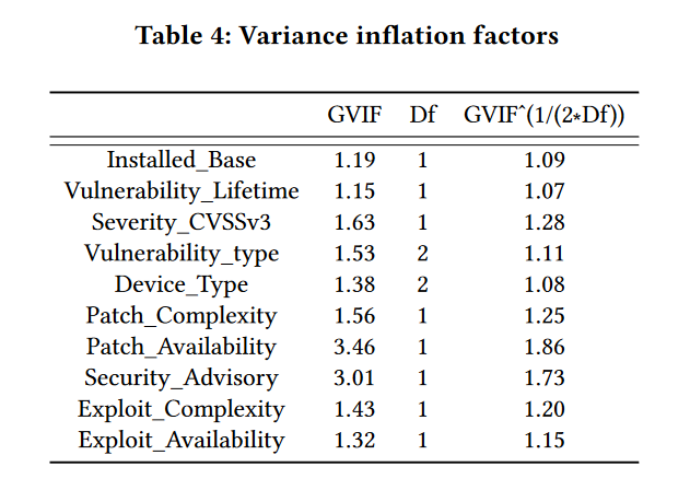 除了使用签名来识别漏洞外,作者还使用它们来统计每个漏洞在整个数据集中出现的频率。作者称这种”利用频率”为因变量。它的目的是获得攻击者更普遍的漏洞利用。