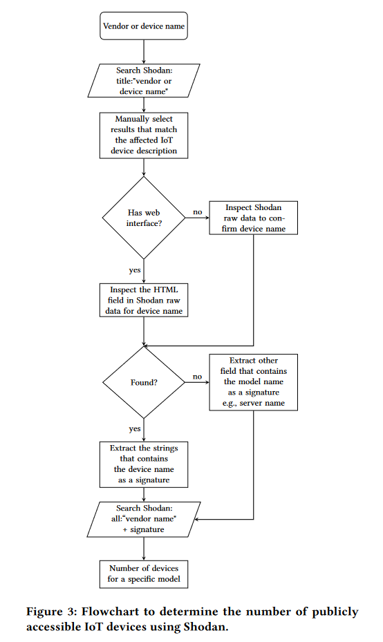 为了测量有漏洞的物联网设备的安装基础,作者开发了一种系统的查询方法:
