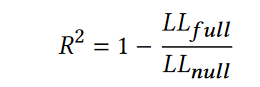 其中,LLfull为全模型的对数似然值,LLnull为零模型(一个没有解释变量的模型)的对数似然值。