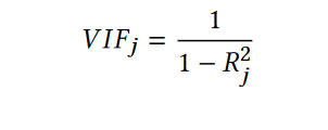第j个解释变量可以通过检查各自的系数β j来测试其在解释利用频率方面的重要性。然而,有必要检查变量是否已经被其他因素所表示,因为冗余变量可能是由于与另一个变量的高度共线性造成的。方差膨胀因子( VIF )可以用来量化这种冗余,并定义为: