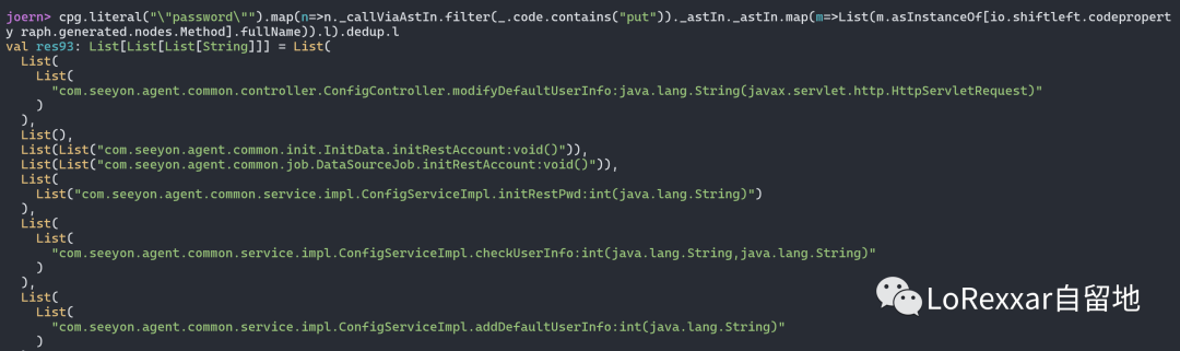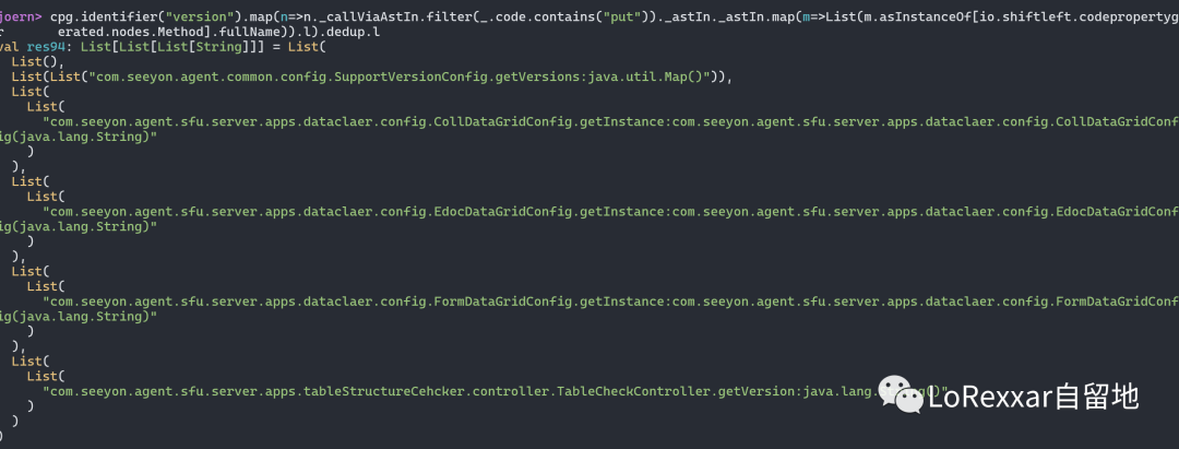 joern> importCode("S1.jar", "seeyons1")val res36: io.shiftleft.codepropertygraph.Cpg = Cpg (Graph [959587 n