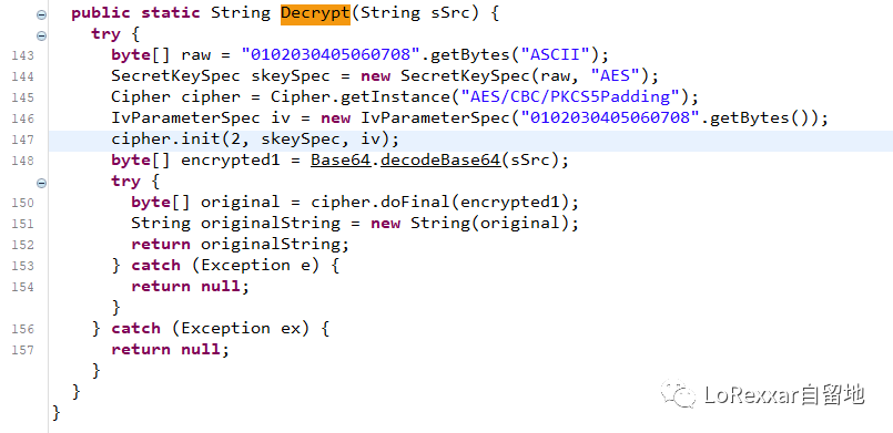 跟踪 AESUtil.Decrypt到定义的位置,可以发现秘钥和iv都是默认的,可以直接使用