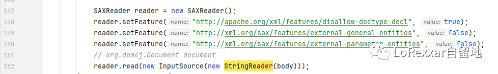 的XXE漏洞修复方案并不是在参数的过滤上,而是在于SAXReader