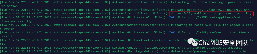 使用该key进行密钥重置,在日志中可以看到如下信息,日志位于/opt/GMSVP/Logs/DbgAppliance0.log