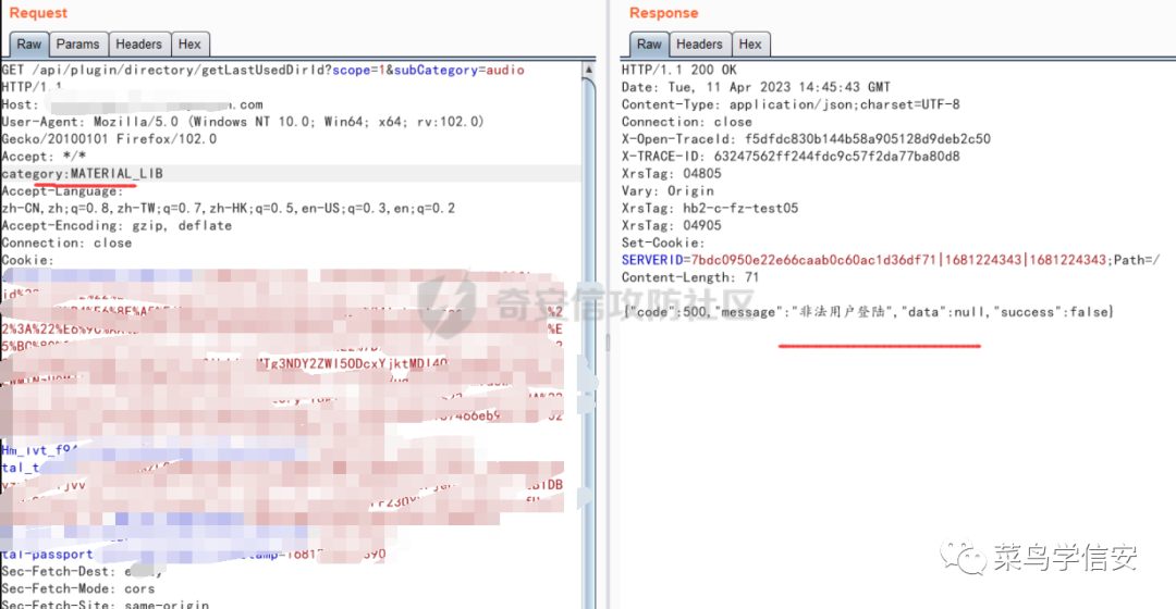 那么我加了其中一个字段category,发现成功,但是却又报了非法用户登录。那么这里就必须需要Authorization认证字段了: