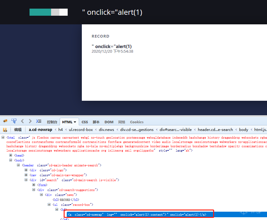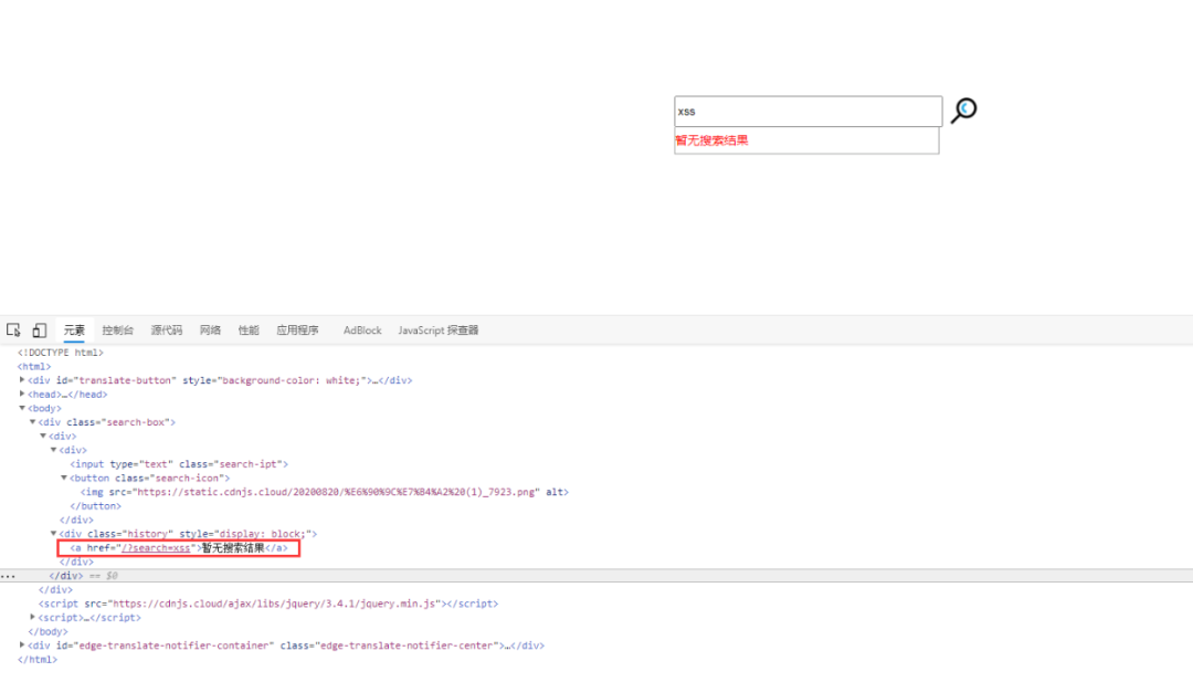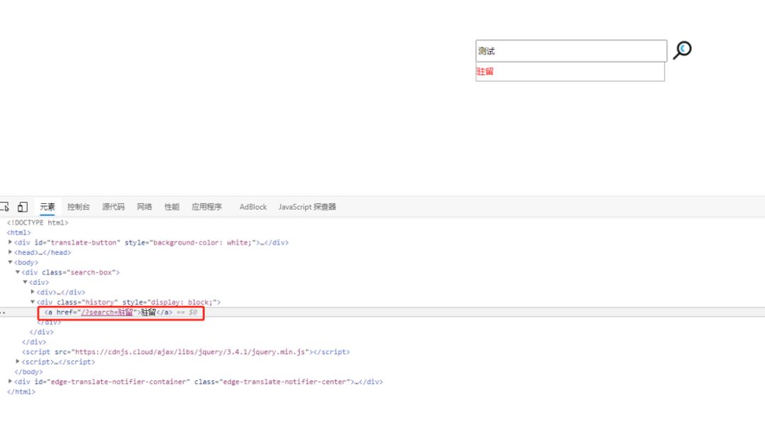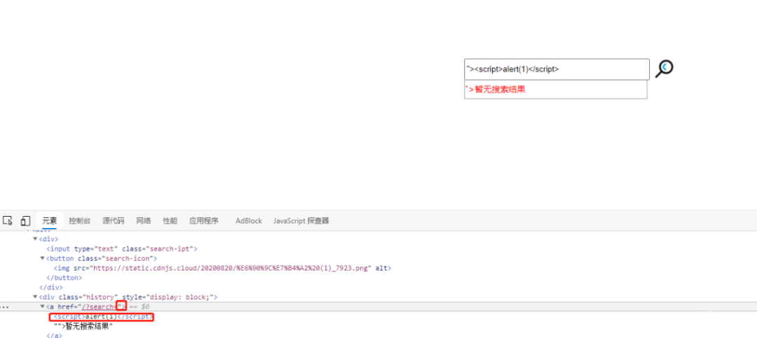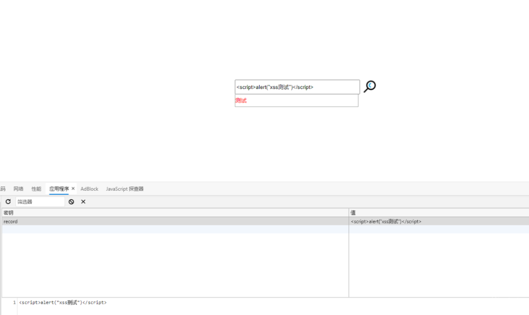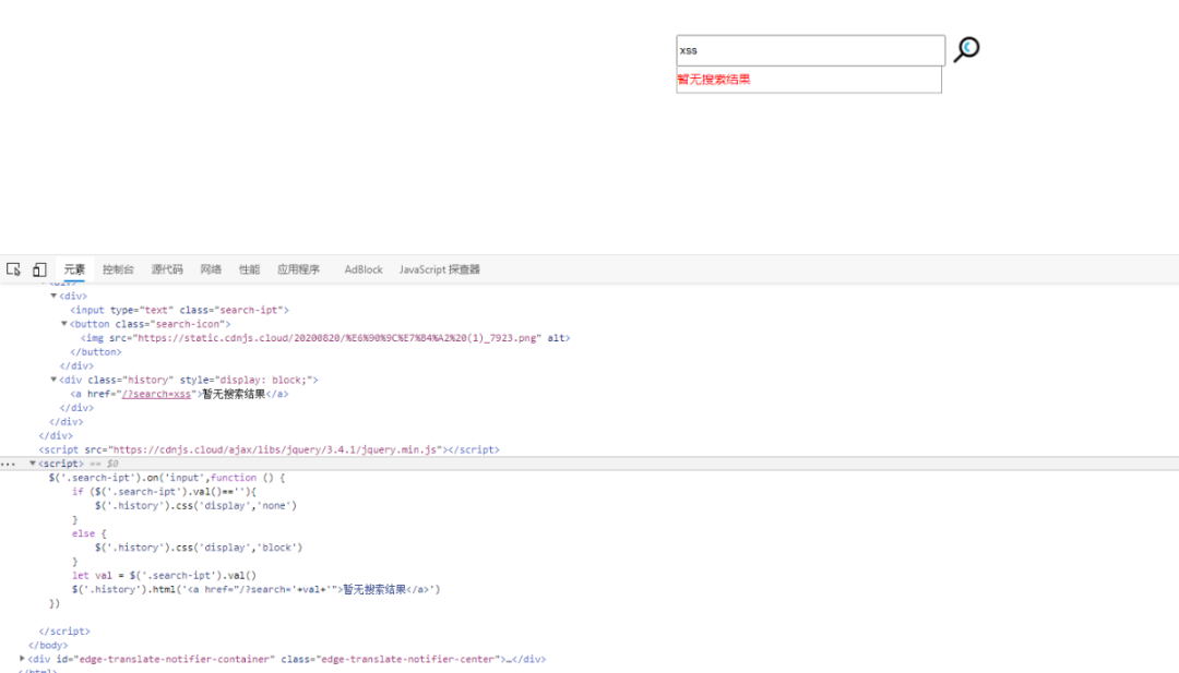 - 搜索执行查看再次搜索成功调用并按js执行了所输入内容