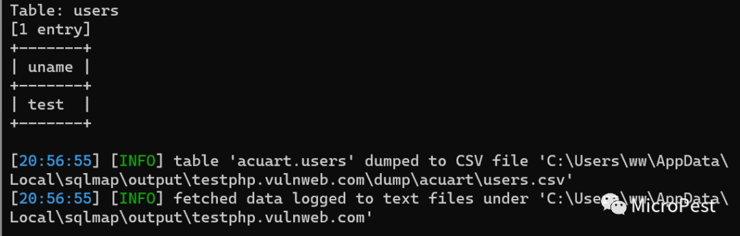 我们可以逐列转储列的数据,也可以将“用户”表中存在的列全部转储.