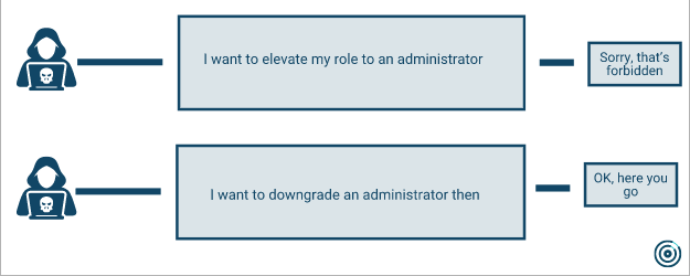 然而我们在全面分析各种用户角色之后注意到了一处差异。针对上下文,某些角色可以编辑和删除其他用户的帐户,但只能对权限较低的帐户执行此操作,拥有这些权限的用户也不能对自己的帐户执行这些操作。为任何高权限用户分配低权限角色的可能性被忽视,实际上删除了所有权限,对帐户进行了降级。从技术上讲,这些被降级的帐户现在满足被权限较低的帐户编辑和删除的条件。