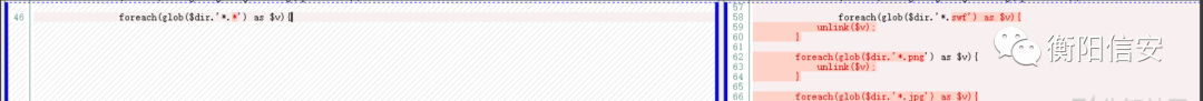 在如上图47行处,存在一处unlink方法,该处删除$dir指定目录中所有文件