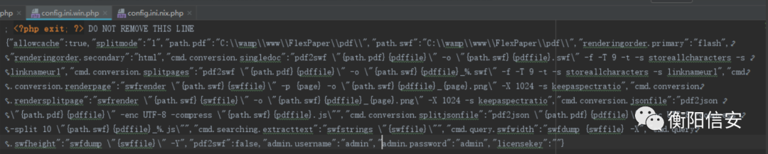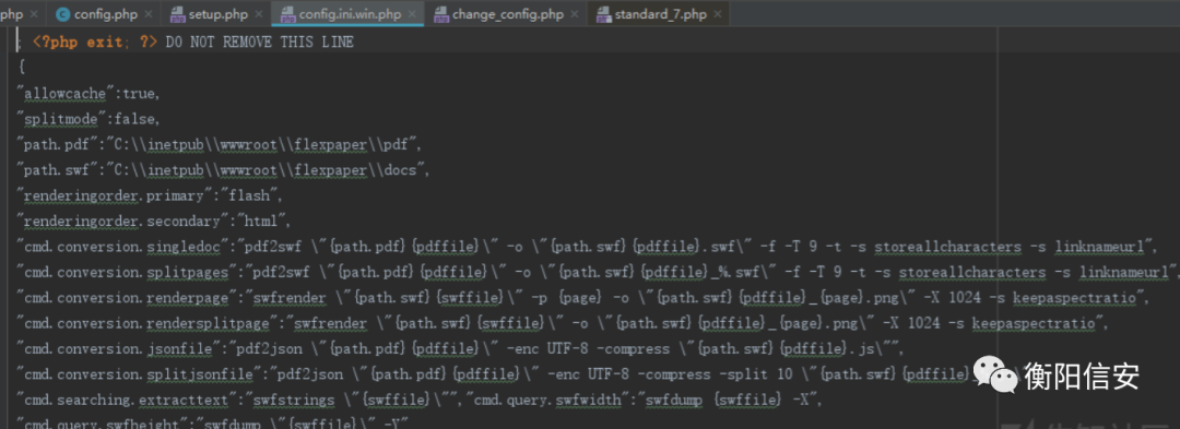 这些线索全都指向了setup.php,setup.php其实是flexpaper后台的安装程序,主要用来生成以及配置配置文件