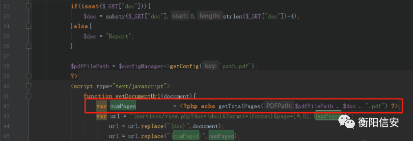 见上图红框处,存在一处getTotalPages方法,该方法接受我们传入payload的$doc参数作为pdf文件名,拼接pdf路径。