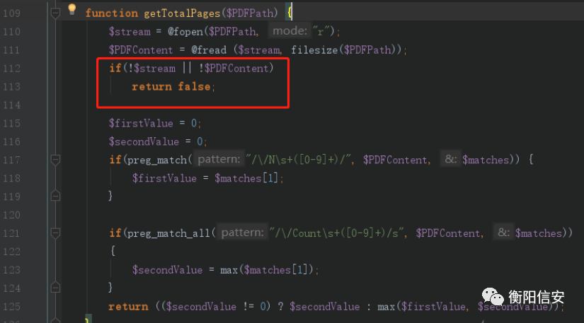 在该方法中有如下判断:如果fopen或者fread传入的pdf文件失败,则返回false。这将导致我们js中numPages变量为空